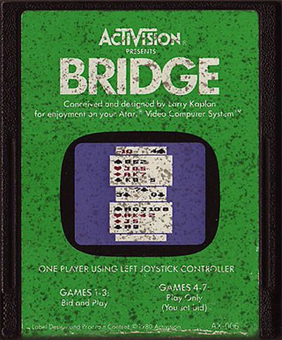 Bridge Cartridges version a)* U ©1980, green label, ML: one hand showing, white background, CART: off-white foam circuit board protector, spring version