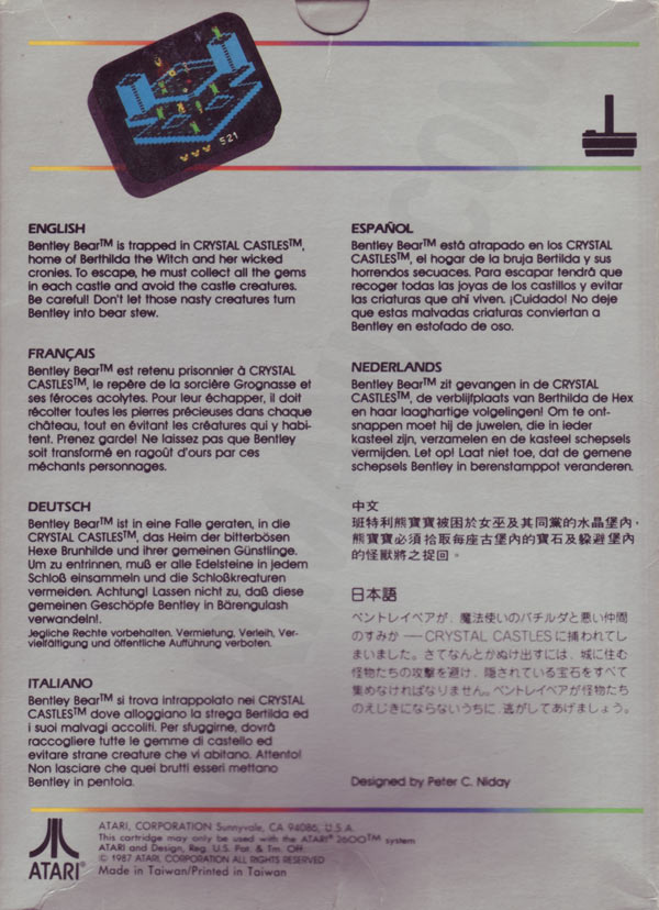 8) ©1988, silver box, Atari Corp. on back, Made in Hong Kong next to it, Printed in Hong Kong, Made in Hong Kong on bottom Front