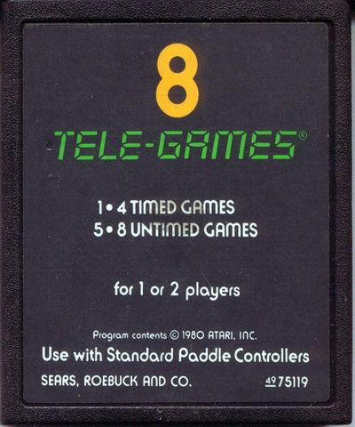 version b)* U 49-75119 ©1980, text label, gold letters, “8” 12 mm in height, “Tele-games” deep green, EL: yellow letters