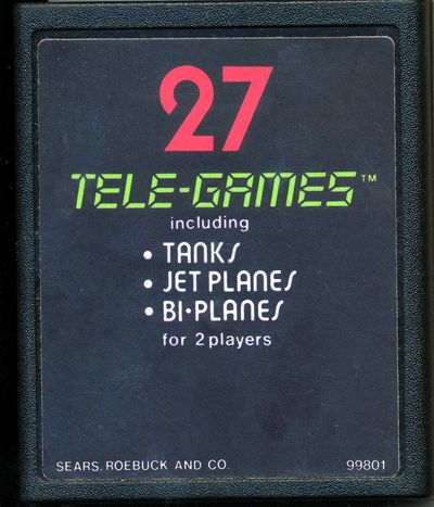 Plus Cartridges version a)* R 99801 no ©, text label, red letters, slanted “s” font, “Co.” in “Sears, Roebuck and Co.” ends under the “s” in “for 2 players”